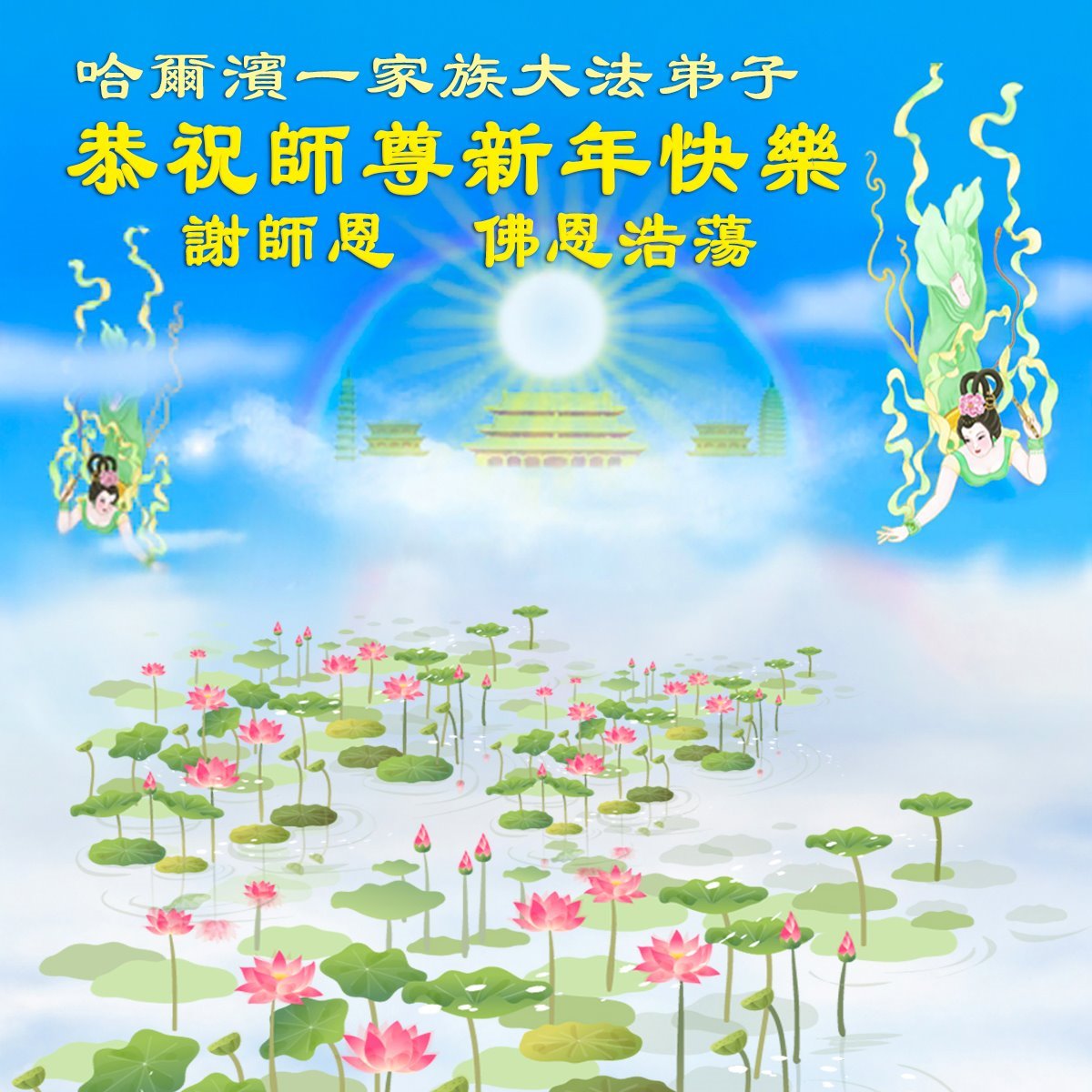 弟子們用盡人間語言也無法表達對師尊的感恩,在新的一年裏弟子們要更加靜心學好法,更加精進做好三件事,不辜負師尊的慈悲苦度,跟隨師尊回到自己真正的家園。