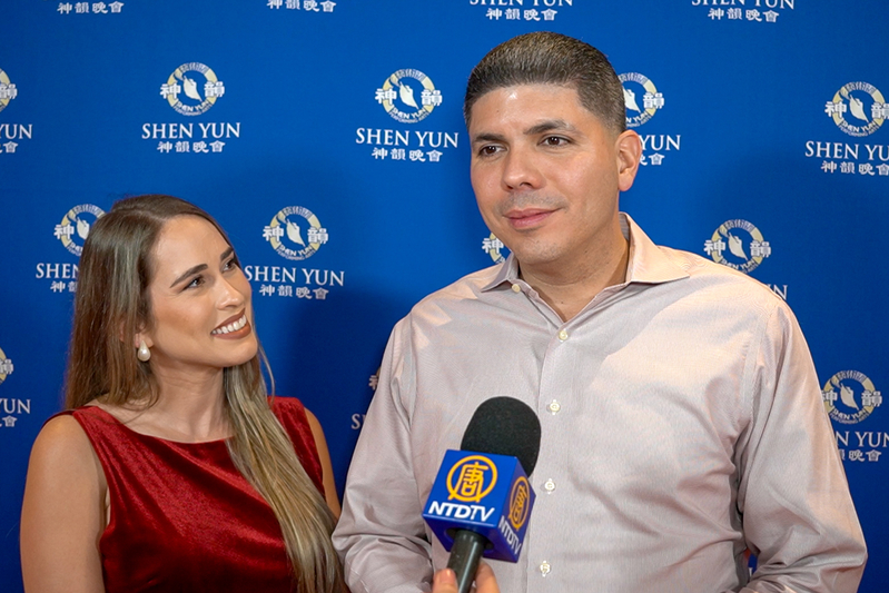 ![]() 圖24:二零二五年二月七日晚,波多黎各眾議員艾迪・查博尼爾・奇尼(Eddie Char-bonier Chinea,右)觀賞了美國神韻新世界藝術團在波多黎各首府聖胡安劉易斯・費雷表演藝術中心(Centro de Bellas Artes Luis AFerré)的首場演出。(新唐人電視台) |
