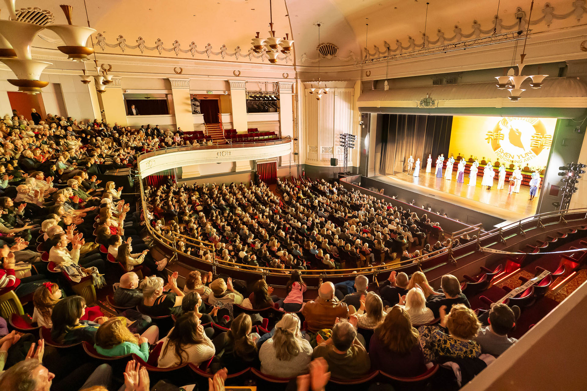 ![]() 圖1:二零二五年二月十三日,神韻世界藝術團在英國伯恩茅斯長亭劇院(Bournemouth Pavilion Theatre)的演出爆滿。由於門票早就售罄,有一些在 「候補名單」 上觀眾意外得到票後,欣喜萬分。舞台上,神韻藝術家流暢優雅的舞姿、融合了東西方精華的現場樂團、色彩繽紛的服裝和舞台設計、古老的中華修煉文化,讓現場觀眾非常感佩,掌聲雷動。(大紀元) |