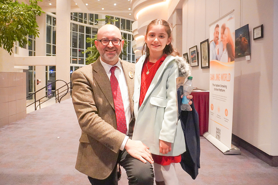 ![]() 圖3:二零二五年二月十一日晚,宗教建築與禮儀藝術設計公司(Heritage Liturgical)負責人兼創意總監恩佐﹒薩維奇斯(Enzo Selvaggi)與七歲的女兒維多利亞(Vittoria)觀賞了神韻巡迴藝術團在美國密蘇裏州斯普林菲爾德市的首場演出。(大紀元) |