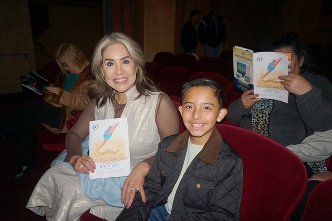 ![]() 圖4:二零二五年二月十六日下午,跨國化妝品公司美國德州銷售總監安赫爾﹒卡瓦列羅(Angel Caballero)攜兒子觀賞神韻北美藝術團在德州艾爾帕索廣場劇院(The Plaza Theatre)的第二場演出。(大紀元) |