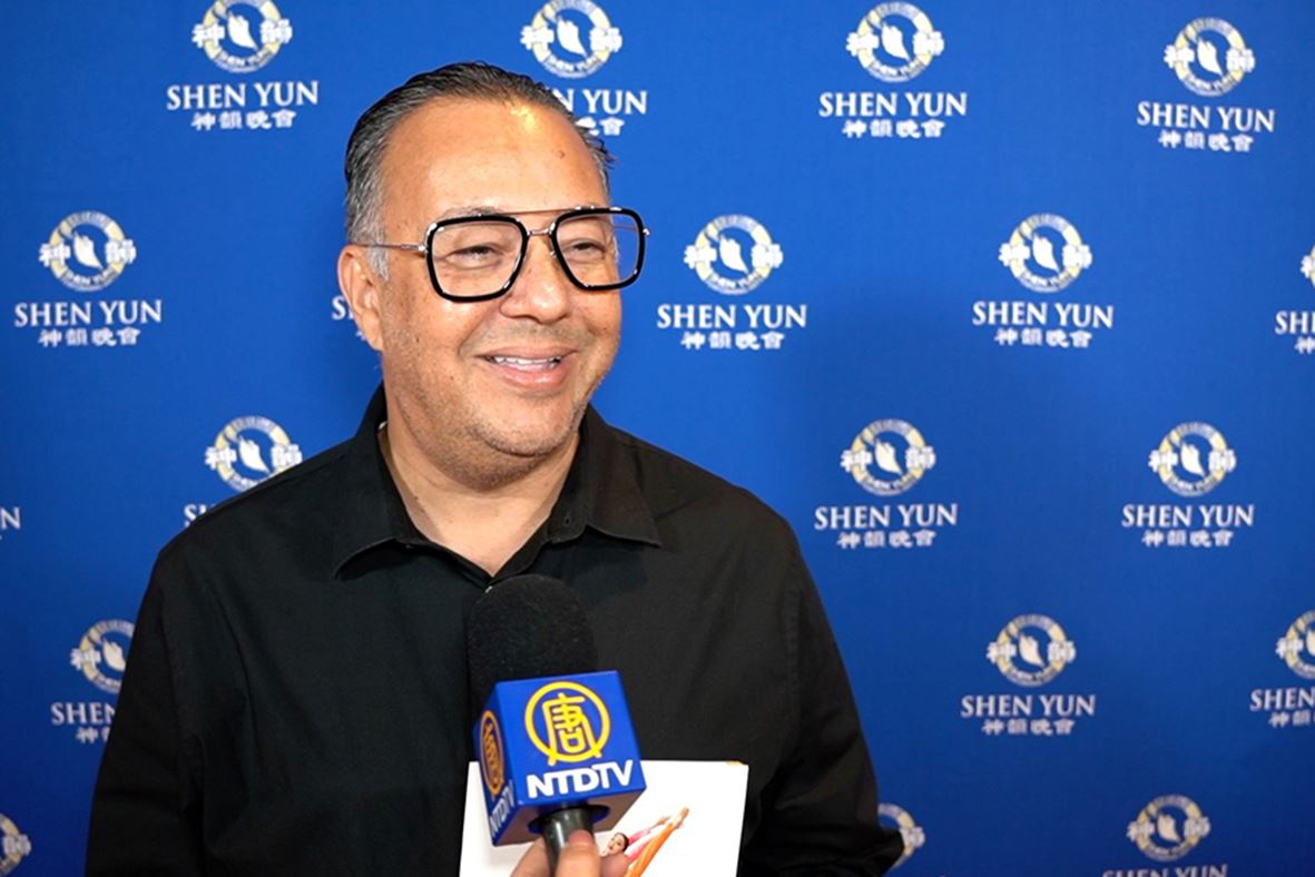 他從演出中感受到了中國傳統文化的神性內涵,「真、善、忍是生命的基礎、生命的本質。恭喜他們!可以看到他們的努力、意志力,還有他們對演出的熱愛,我真心的讚美!」