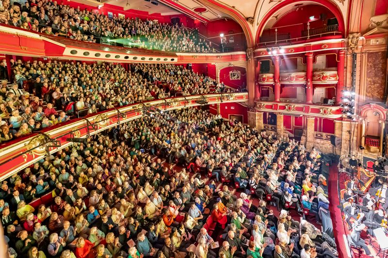 ![]() 圖3:二零二五年二月二十日至二月二十二日,神韻世界藝術團在英國布里斯托競技場劇院(Bristol Hippodrome)演出四場,圖為二月二十日首場演出爆滿。(大紀元) |