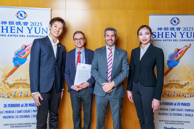 ![]() 圖9:二零二五年三月六日,西班牙加泰羅尼亞大區議員曼努埃爾‧赫蘇斯‧阿科斯塔‧埃利亞斯(Manuel Jesús Acosta Elías)(左二)向神韻藝術家贈送賀信,以示褒獎與感謝。市議員馬可‧羅德裏格斯(Marco Rodríguez,右二)也向神韻藝術家表達感謝。(大紀元) |