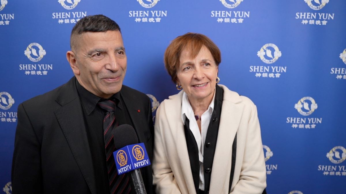 ![]() 圖10:二零二五年三月四日晚,法國騎士勛章得主喬治‧雅克諾(Georges Jacono)伉儷觀賞了神韻演出。(新唐人電視台) |