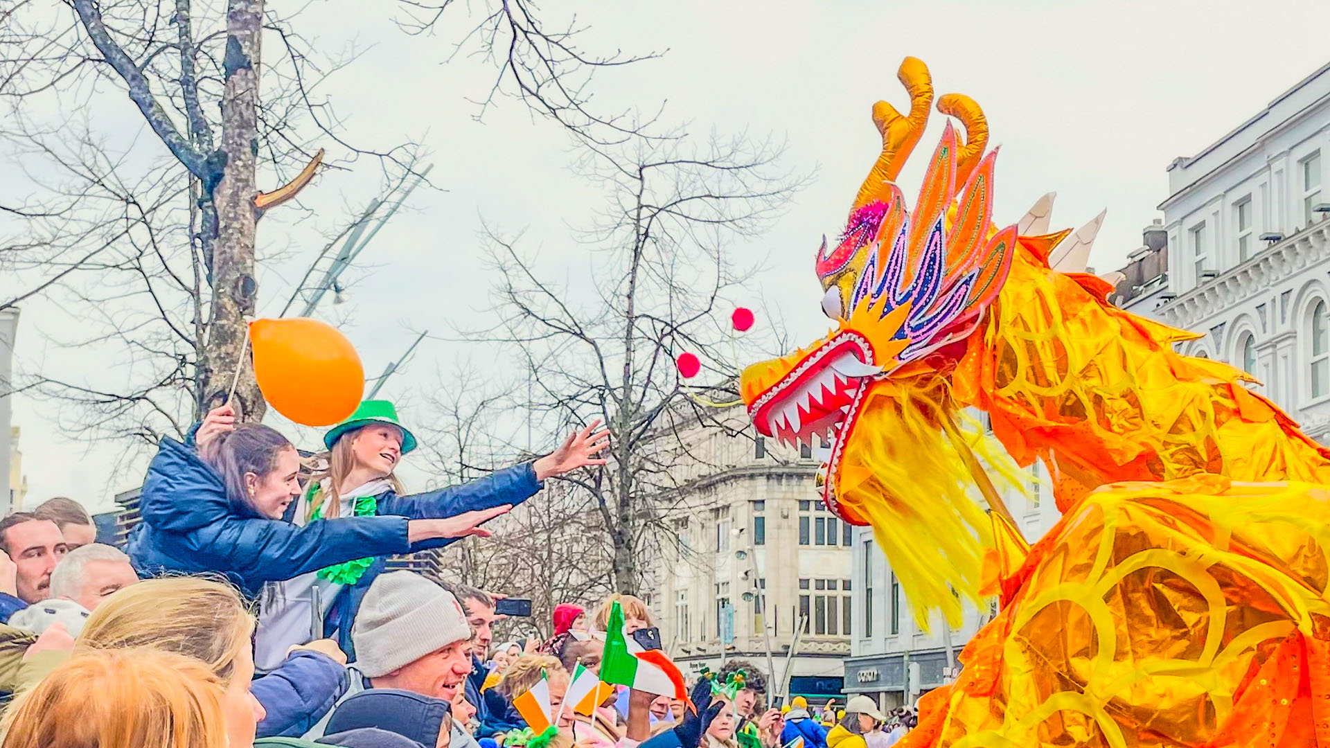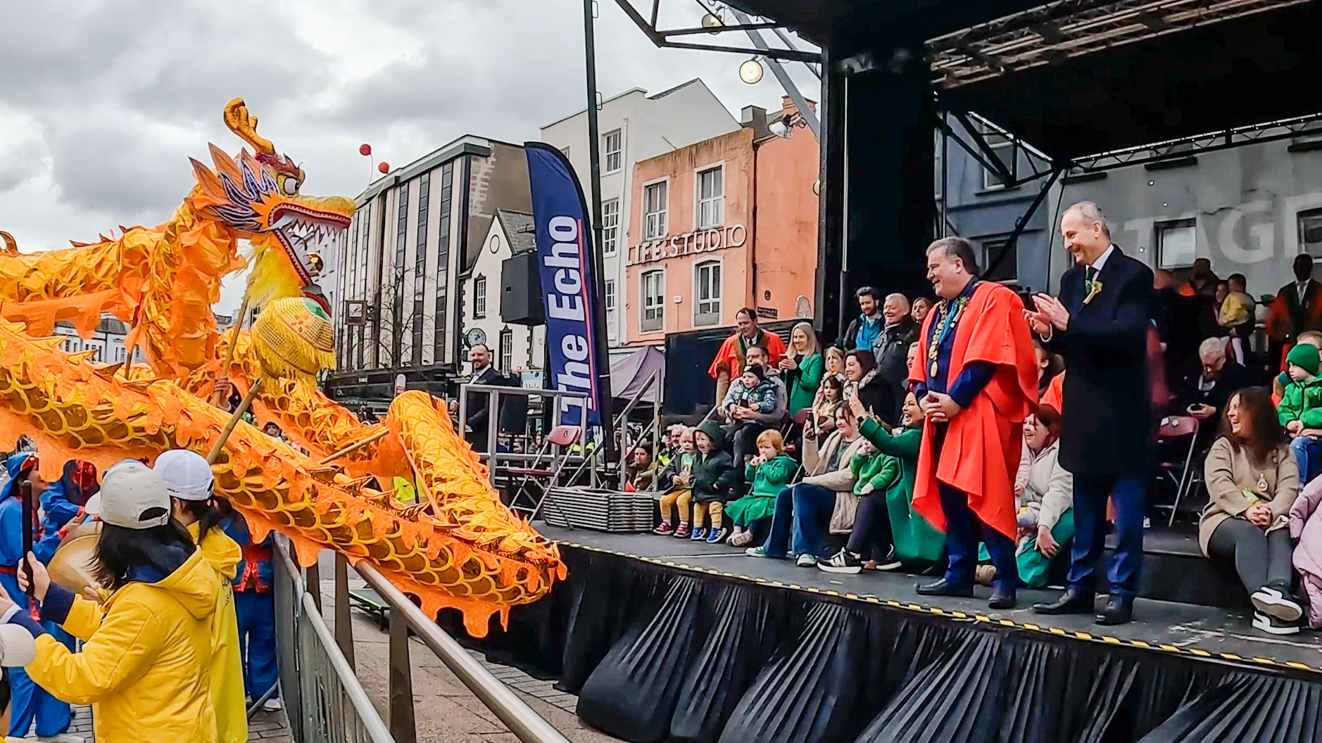 剛從美國回愛爾蘭的總理米歇爾﹒馬丁(Micheál Martin),當日也來到故鄉科克市,與近五萬民眾一同在現場觀看遊行表演。