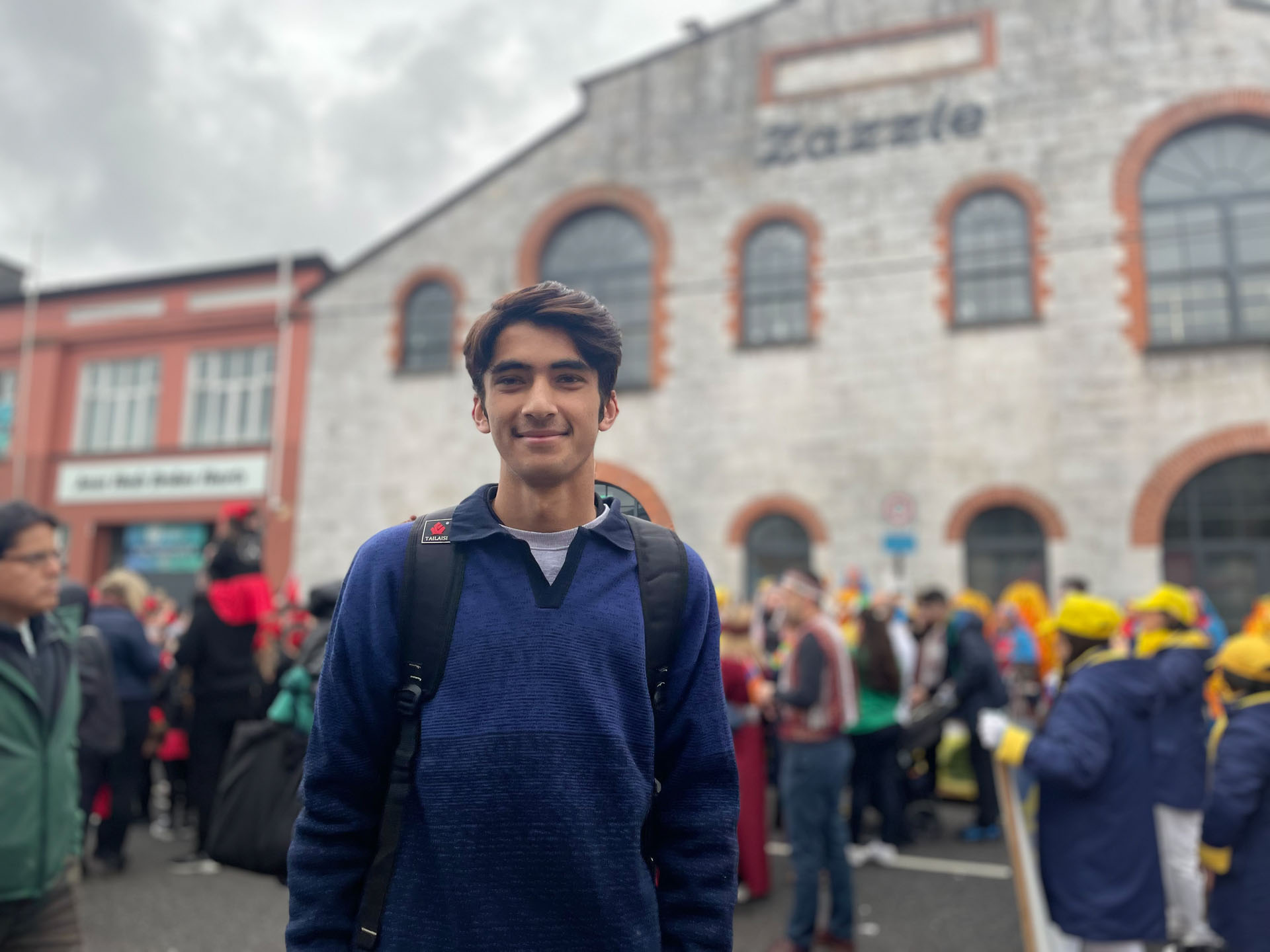 來自巴基斯坦的艾森(Ahisan)在遊行開始前,經過隊伍的準備區。當時學員正在靜靜的煉功,艾森說他感到法輪功的隊伍令人快樂、「充滿活力」。聽學員介紹甚麼是法輪功後,艾森對功法所信仰的真、善、忍表示贊同。