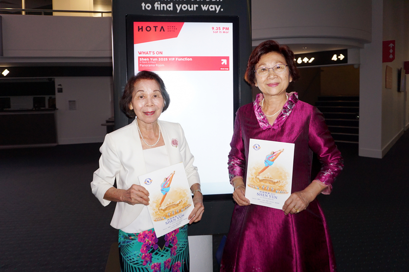 ![]() 圖16:二零二五年三月十五日晚,中華民國僑務委員陳秋燕女士(右)與僑務委員徐瑞雲女士在黃金海岸觀賞了神韻演出。(大紀元) |
