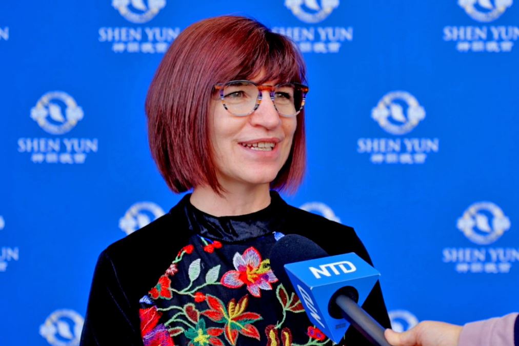 ![]() 圖10:二零二五年三月二十三日下午,加拿大喬治亞學院設計與視覺藝術系教授安德萊婭・溫克巴赫(Andrea Wenckebach)在加拿大密西沙加觀賞了神韻演出。(新唐人電視台) |