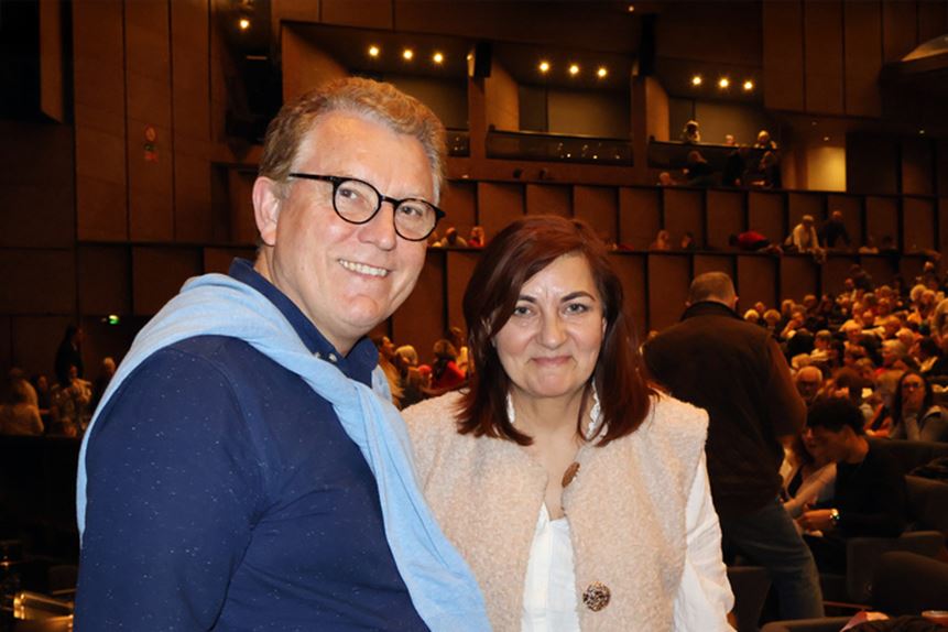 ![]() 圖12:二零二五年三月二十三日晚,法國裏昂一家銀行的商業總監菲利普﹒梅泰裏(Philippe Metairie)和太太西爾維(Sylvie)在蒙彼利埃市觀賞了神韻演出。(大紀元) |
