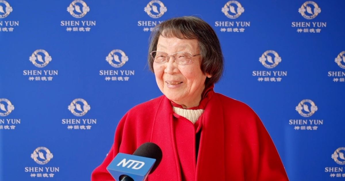 ![]() 圖2:二零二五年四月三日,中國著名文學家、民國大師梁實秋的三女兒梁文薔,在西雅圖市觀賞了神韻演出。(新唐人電視台) |