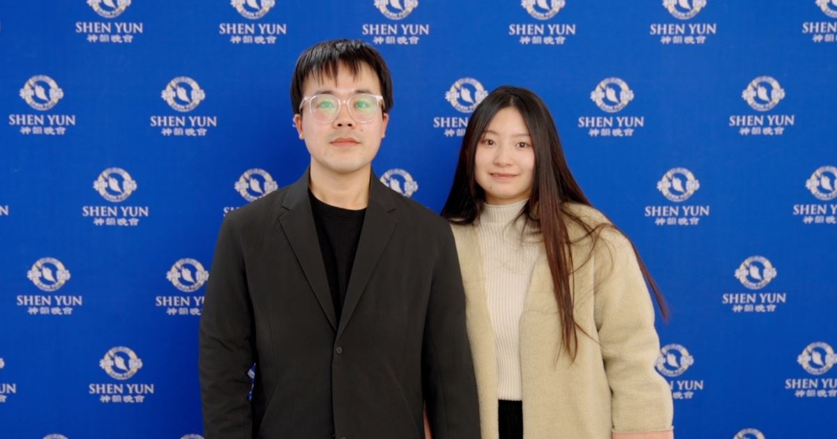 ![]() 圖5:二零二五年四月六日下午,大陸新移民李磊夫婦在多倫多觀賞了神韻演出。(新唐人電視台) |