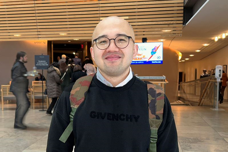 ![]() 圖4:二零二五年四月五日晚,來自大陸的青年移民李先生在多倫多觀賞了神韻演出。他表示,第二次來觀賞神韻,希望能找到人生的答案。(大紀元) |