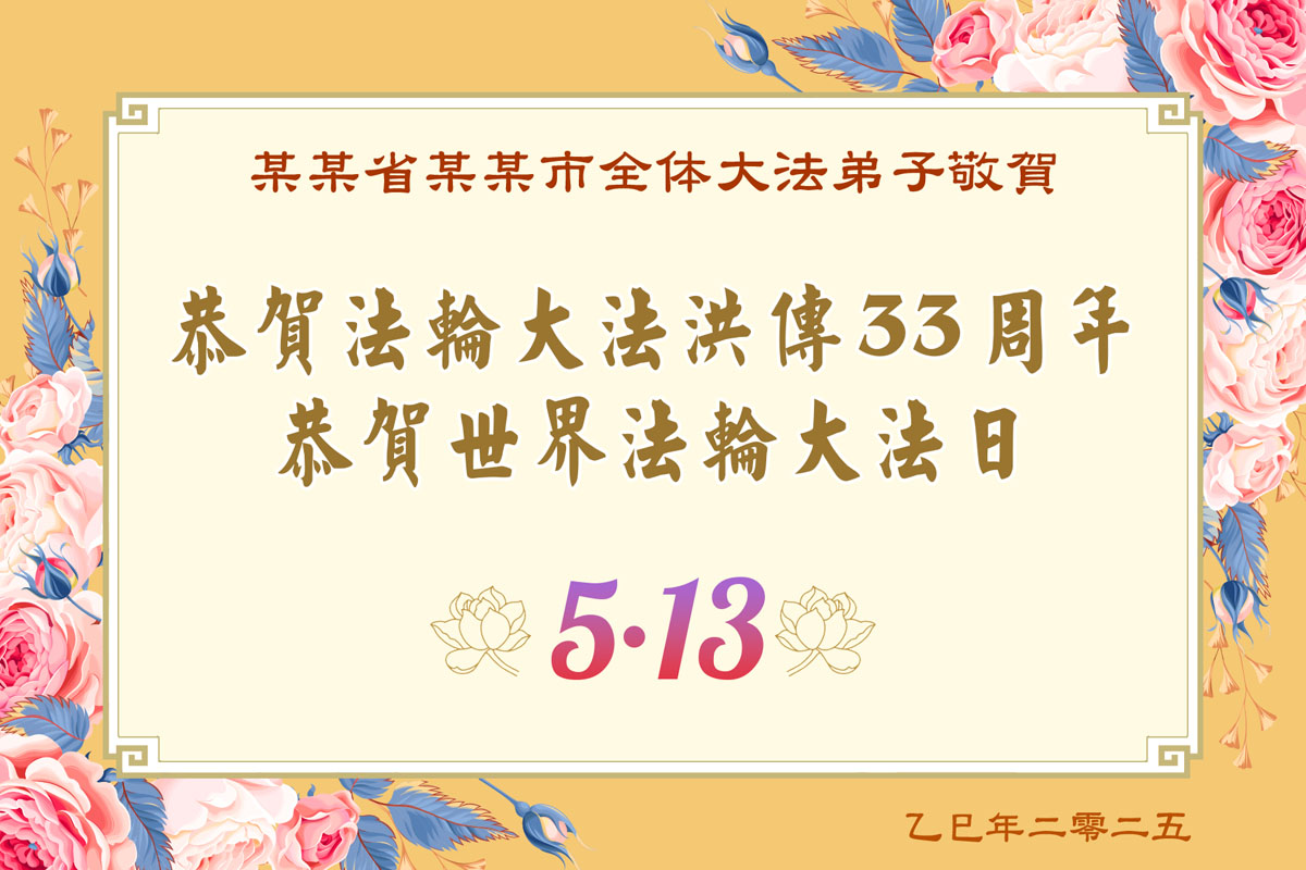 【明慧網二零二五年四月十五日】五月十三日是一年一度的世界法輪大法日。在今年的世界法輪大法日來臨之際,明慧網再次提供了多款賀卡設計供我們大家選用。還沒看到的可以點開以下鏈接: