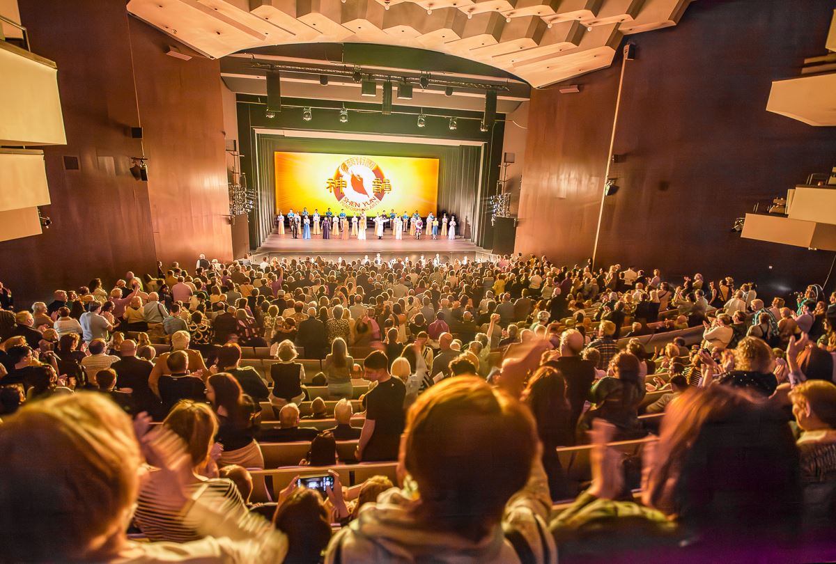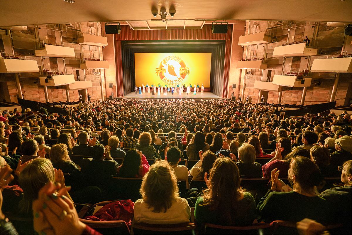 ![]() 圖2:二零二五年四月九日至四月十三日,神韻新紀元藝術團在加拿大蒙特利爾藝術中心(Place des Arts)維爾佛雷德-佩雷提埃(Wilfrid-Pelletier)劇院五天共演出六場,現場的觀眾超過一萬人。圖為四月十三日下午的最後一場演出謝幕照。 |