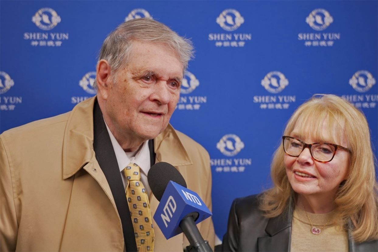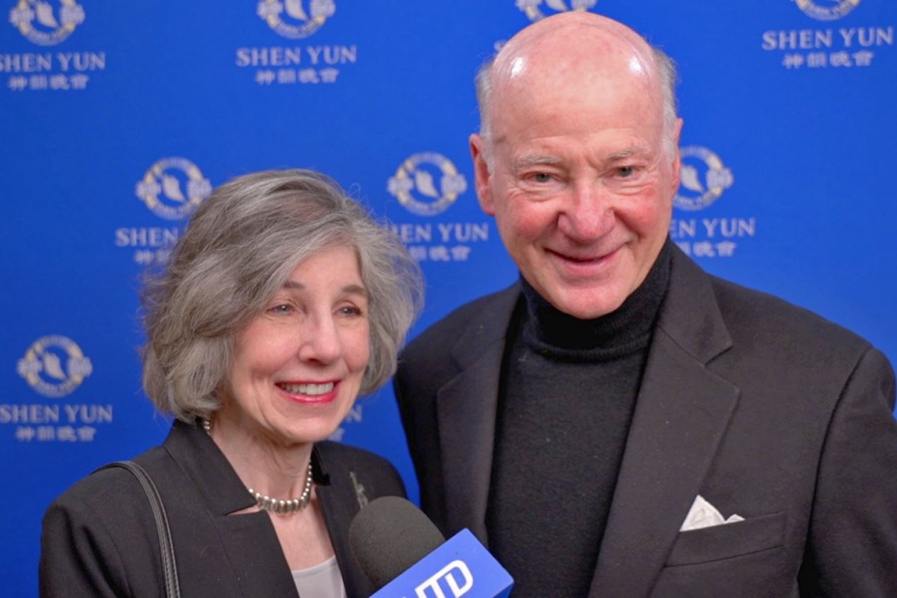 ![]() 圖8:二零二五年四月三日晚,資深金融家威廉・諾蘭(William Nolan)攜太太林恩・諾蘭(Lynn Nolan)在紐約林肯中心觀賞了神韻演出。(新唐人電視台) |