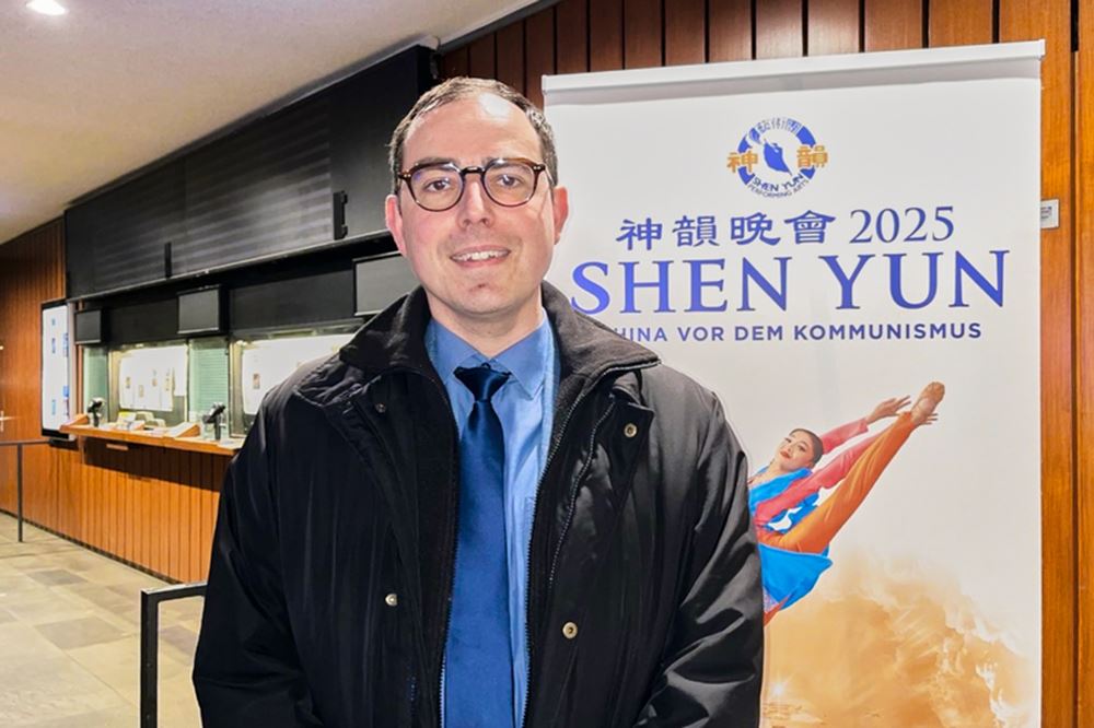 ![]() 圖3:二零二五年三月二十七日晚,前德國國會議員安東‧弗裏森(Dr. Anton Friesen)在柏林觀賞了神韻演出。 (大紀元) |