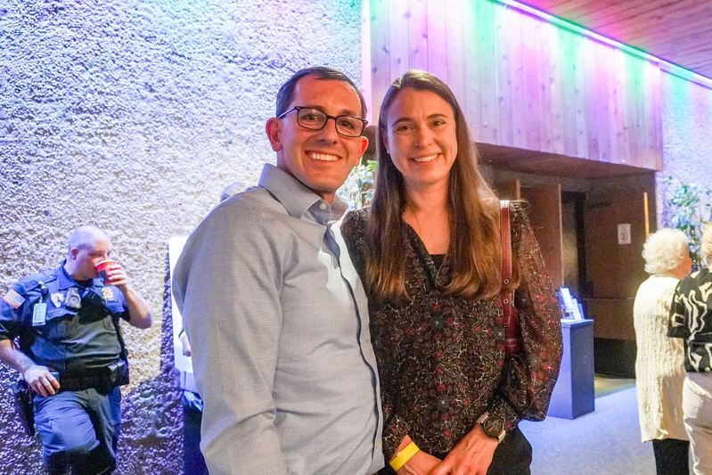 ![]() 圖6:二零二五年三月二十六日晚,美國一家公司的財務總監達倫﹒史密斯(Darren Smith) 和太太觀賞了在夏安市的神韻演出。中場休息期間,他們在法輪大法書籍的展位前排隊準備購買。(大紀元) |
