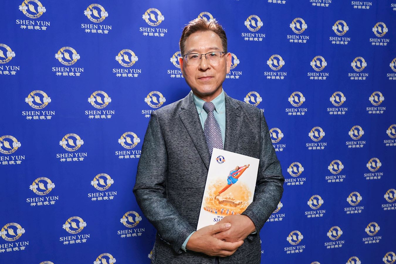圖8:二零二五年五月九日,韓國首爾市教會總聯合會運營委員會事務、牧師樸源泳在果川市觀賞了神韻演出。(大紀元)