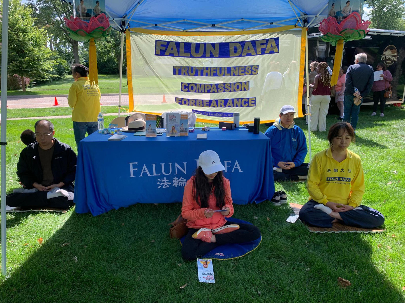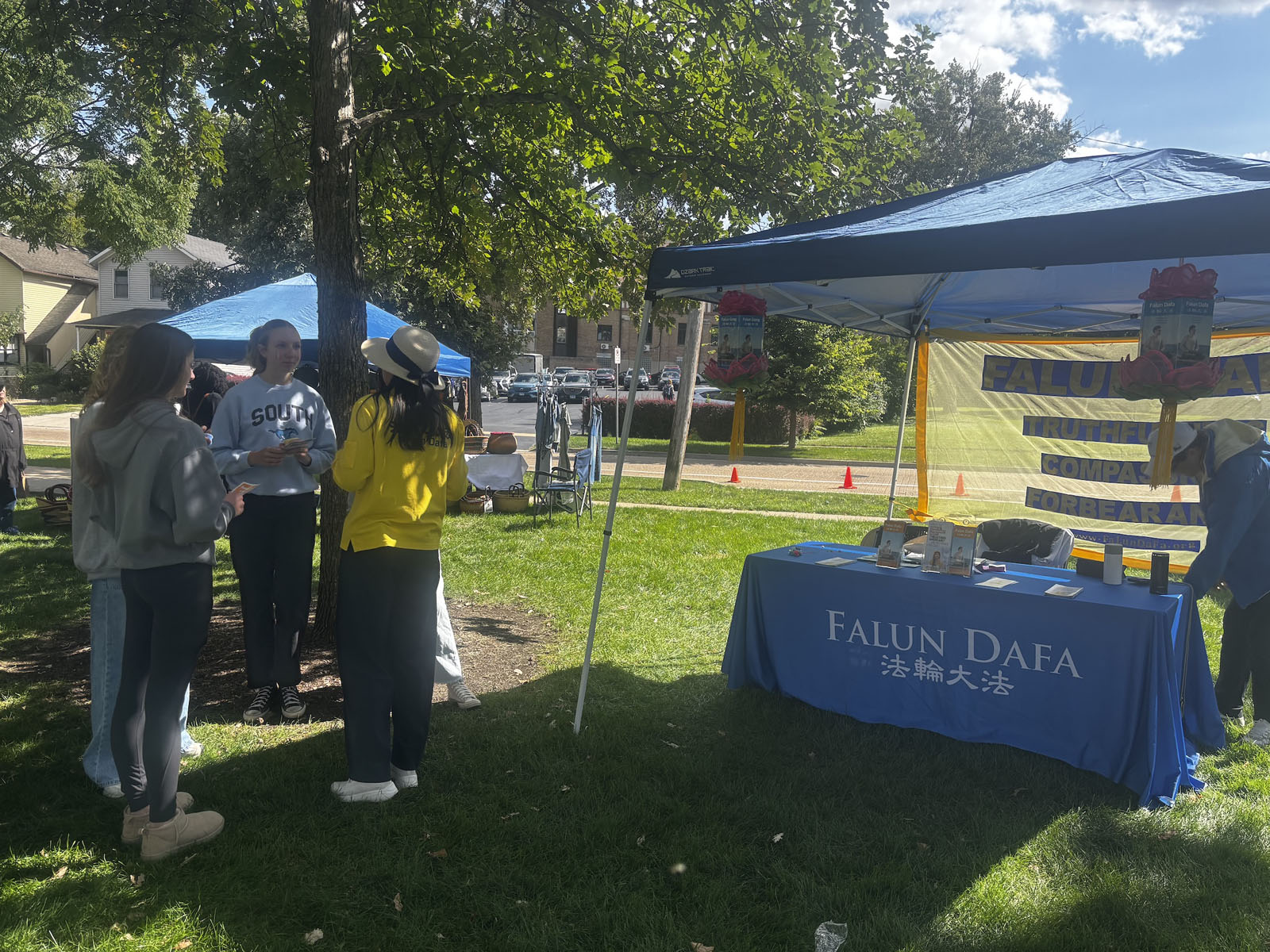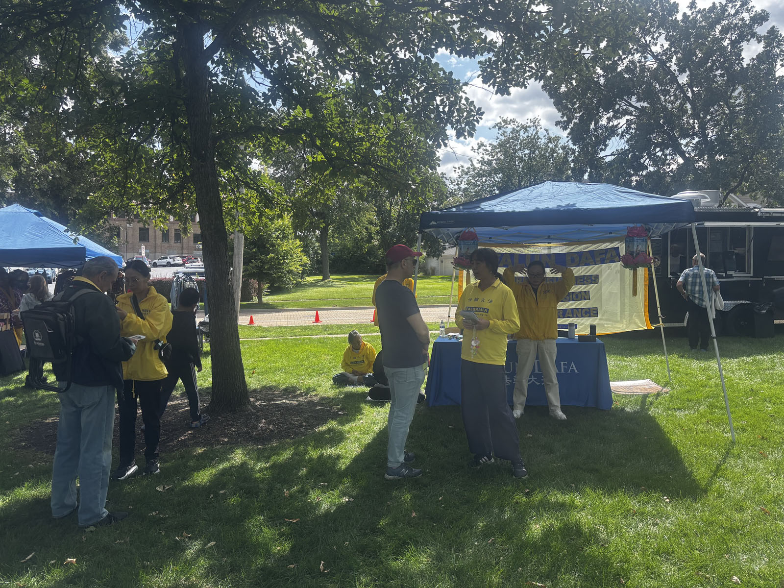 法輪功學員們向人們講述修煉法輪大法對身體、心靈健康都會帶來改善,很多人立即表達了強烈的興趣,當聽到學煉法輪大法完全是免費的,很多人表示非常驚訝。有的人現場跟學員學煉功,有的人當知道法輪功學員在附近的芝加哥和瑞柏市(Naperville)也都有法輪功煉功點時,表示他們會去這些煉功點。更多人很高興獲得了在網上了解和學煉法輪功的信息。