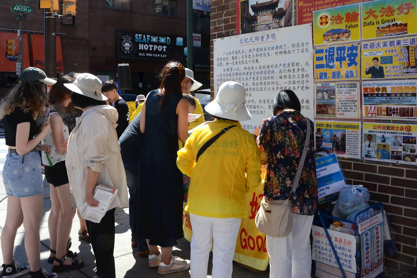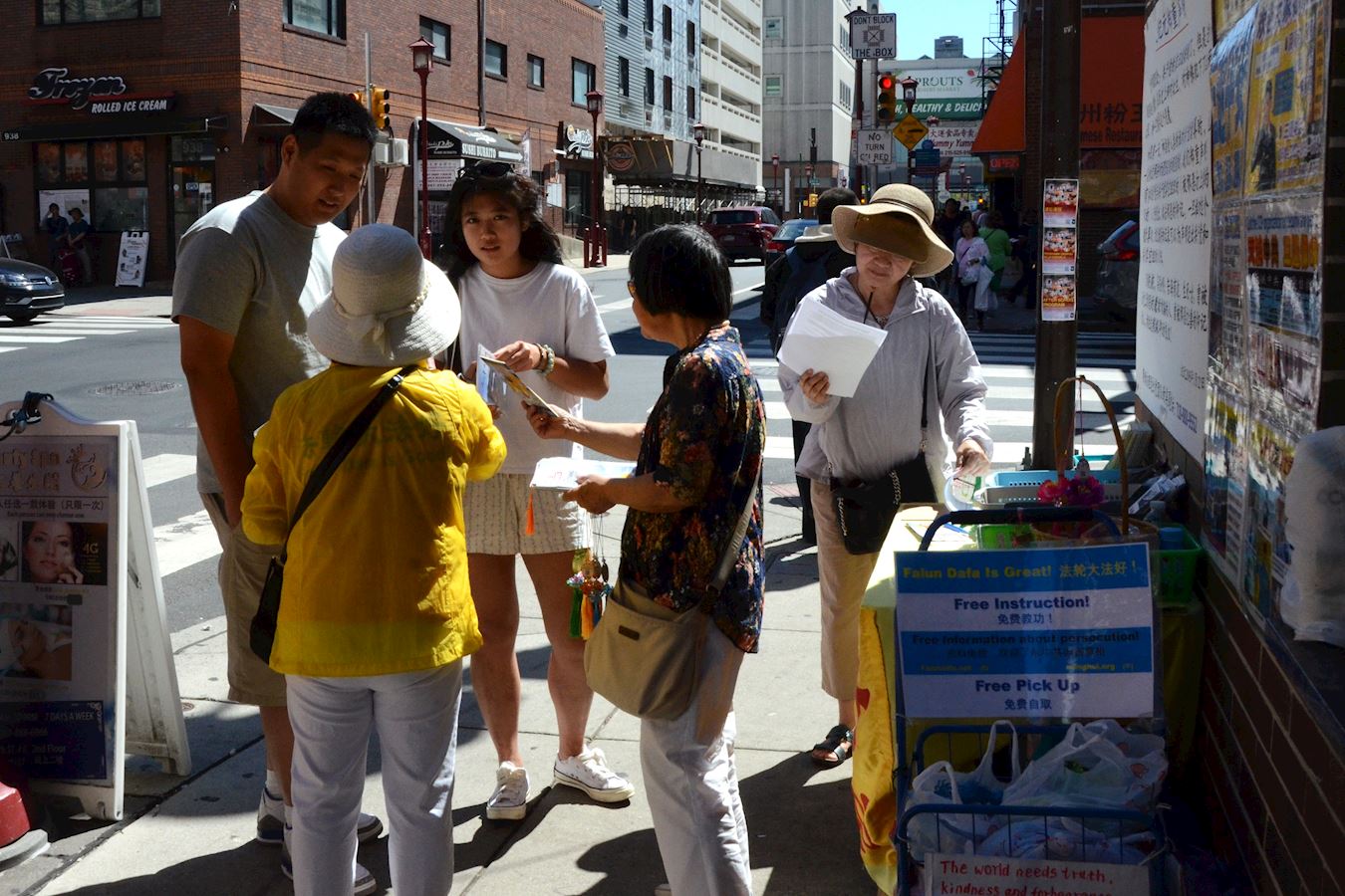 ![]() 圖12~15:路人通過聽聞演講,觀看圖片展了解大法的美好,迫害的殘酷。 |