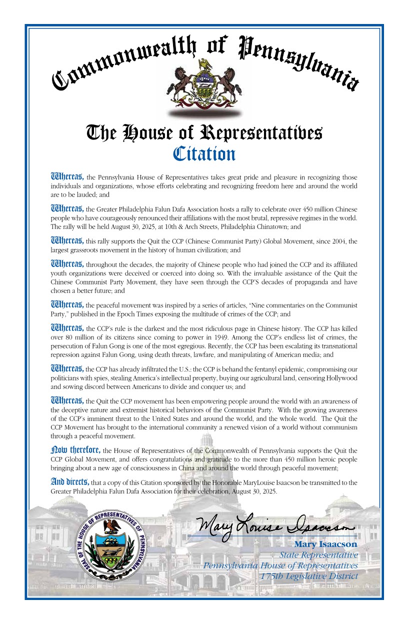 「過去二十六年來,坎普西的法輪功學員幫助人們了解中共對法輪功的迫害,分發獨立中文報紙,如《大紀元時報》和《明慧週報》,並協助從中國來澳洲的移民退出曾在中國被迫加入的中共黨、團、隊組織,從而在澳大利亞能過上擺脫共產主義壓迫的生活。」