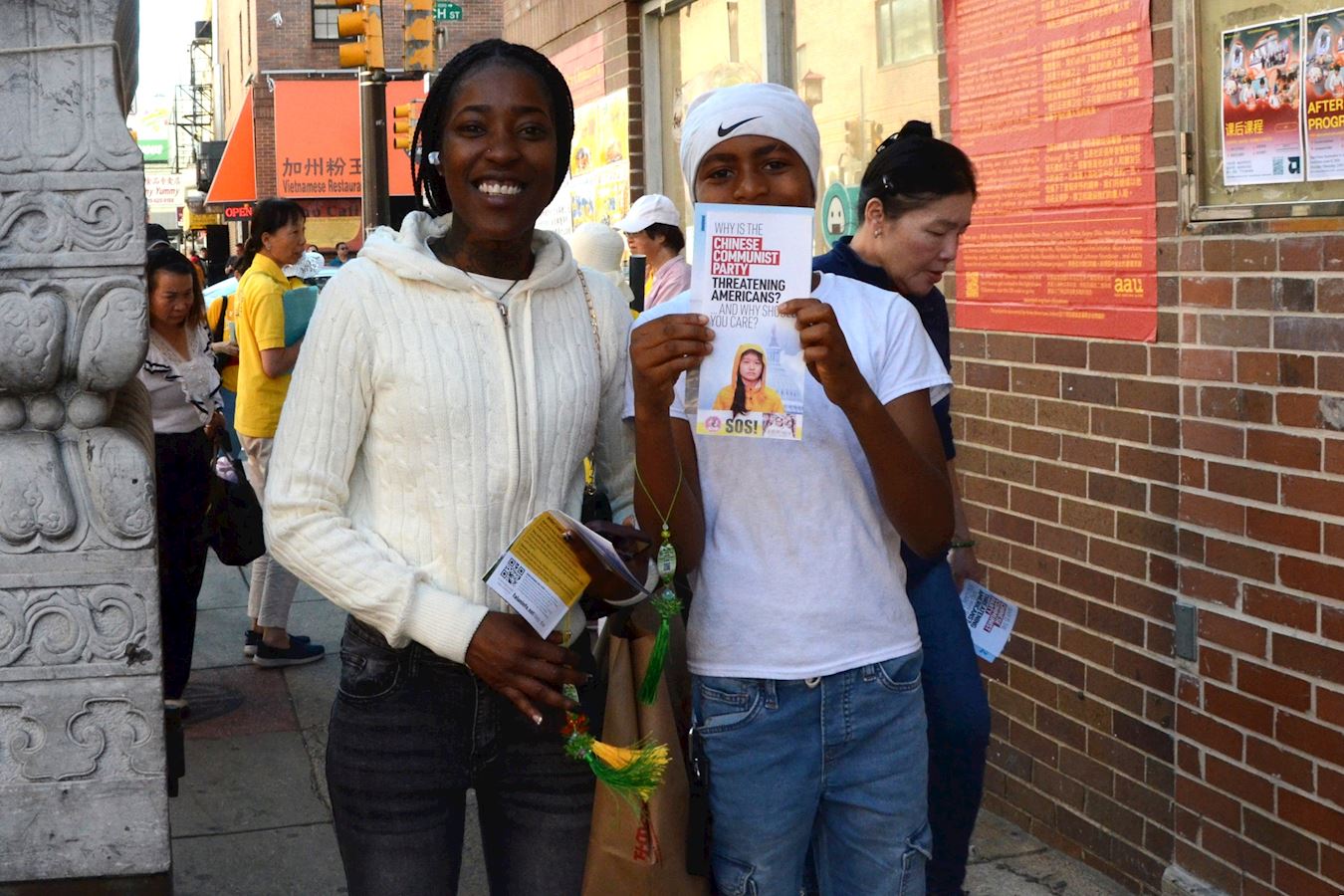 她們都簽名支持法輪功學員:「人們應該有自由表達信仰的權利,不該遭受酷刑或殺害。」「尤其這(法輪功)是非常和平的,真心希望他們能自由踐行信仰。」她們也談道:「整個展覽都很打動我們,最重要的是這裏的人們(法輪功學員)對我們非常友善,我們覺得必須盡全力支持她們。」「是的,我們對法輪功也很好奇,渴望能了解更多。」