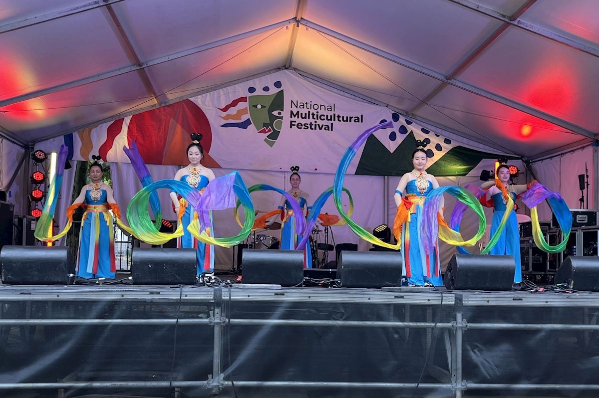 '圖4:法輪功學員在澳洲多元文化節舞台上表演中國傳統舞蹈。'