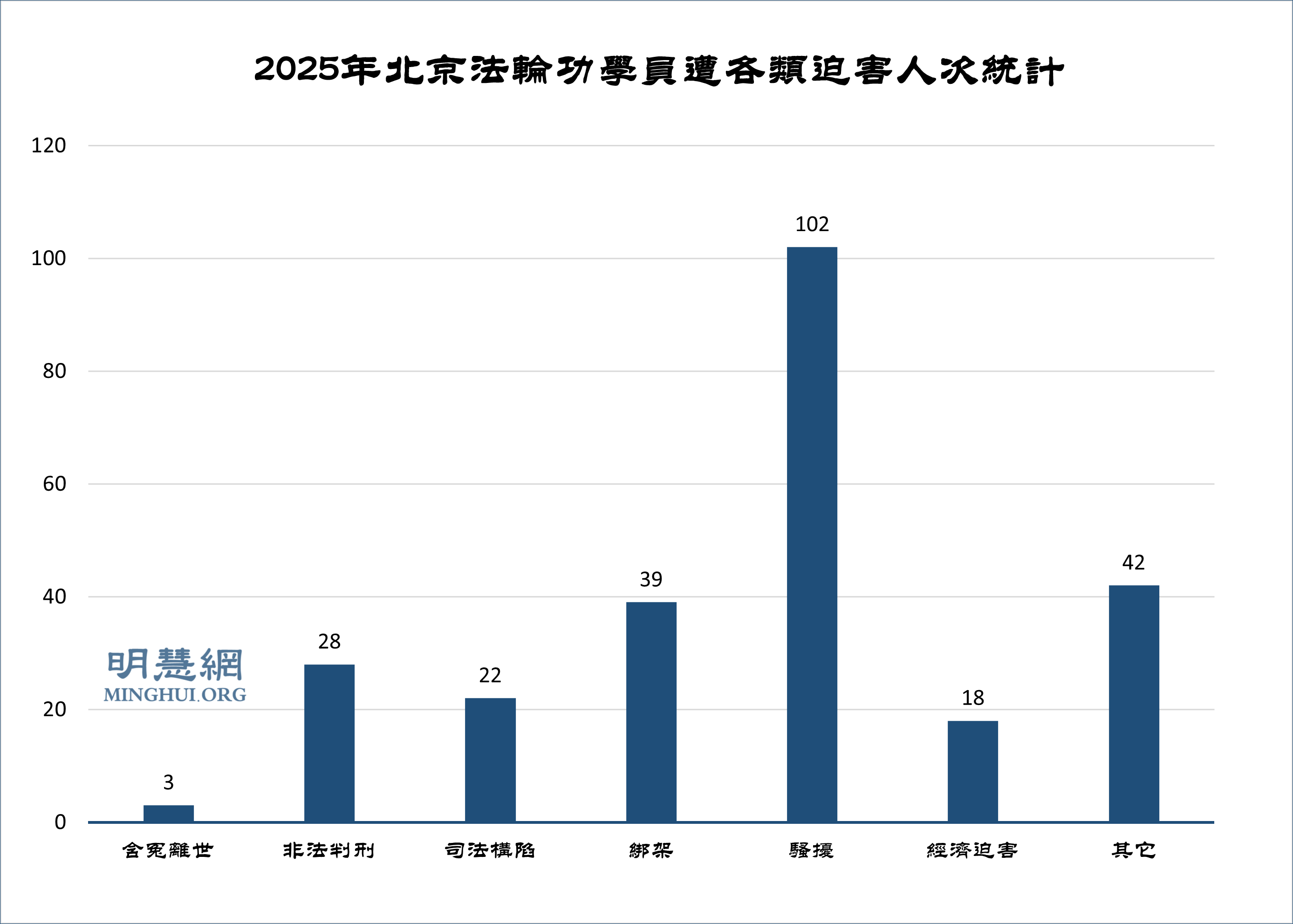 ![]() 圖2:2025年北京法輪功學員遭各類迫害人次統計 |